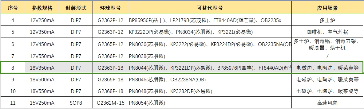在电源管理领域,非隔离buck芯片扮演着至关重要的角色,尤其是在小家电市场中。G2363P-18作为一款高性能的非隔离buck芯片,以其18V350mA的输出能力,广泛应用于电磁炉等设备。然而,在实际应用中,工程师们可能会寻找替代型号以满足特定的设计需求或成本考虑。以下是G2363P-18的一些可替代型号及其特点分析。