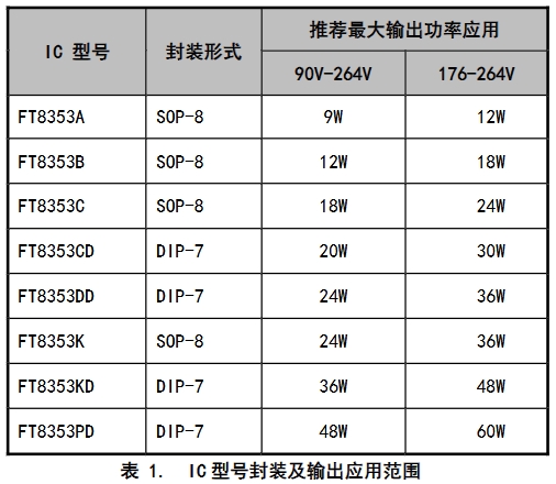 FT8353x系列共有多种型号,每种型号针对不同的输出功率范围和封装形式进行了优化,以满足多样化的LED照明应用需求。具体型号及其特点如下: