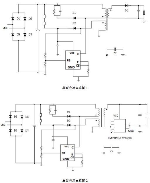 FM3783GA/FM3783GB的典型应用电路简单明了,外围元件少,便于设计和调试。以下是其典型应用电路示意图: