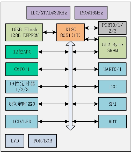 高速性能:超高速8051内核1T mcu的时钟频率可达到几十兆赫甚至更高,能够在单位时间内执行更多的指令,大大提高了系统的响应速度和处理效率。