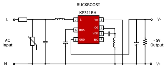 输入电源:输入电源通过变压器的初级绕组连接到 KP311BHWG 的输入端,为芯片提供工作电压。
