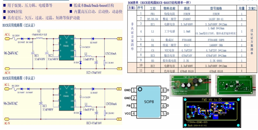 FT8440E芯片SOP8封装,用于饭煲、压力锅、电暖器等低成Buck/buck-boost结构,内置高压启动,启动快,动态快具有过压、欠压、过流、过温、短路等?;すδ堋?br/>
