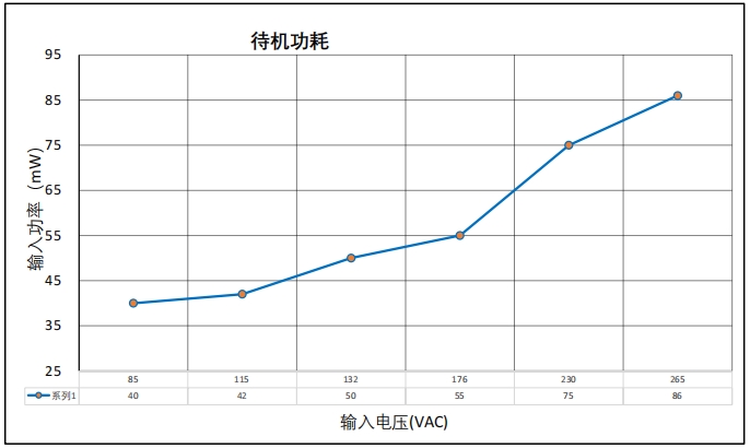 从图中可以看出,BP86513D在不同输入电压下的待机功耗均低于100mW,符合节能标准。