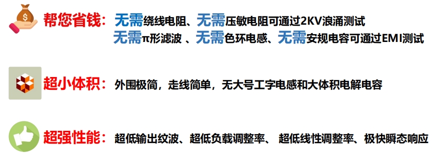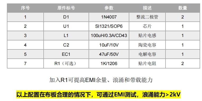 SI1321X系列无需绕线电阻、压敏电阻,即可通过2KV浪涌测试;无需π形滤波、色环电感、安规电容,也能轻松通过EMI测试。这种设计极大地简化了电路设计,减少了元件数量,降低了成本,同时也提高了系统的可靠性和稳定性。
