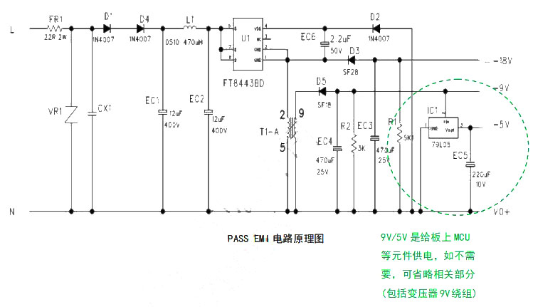 | PWM功率开关 | FT8443BDx | 1 | 核心控制芯片 |