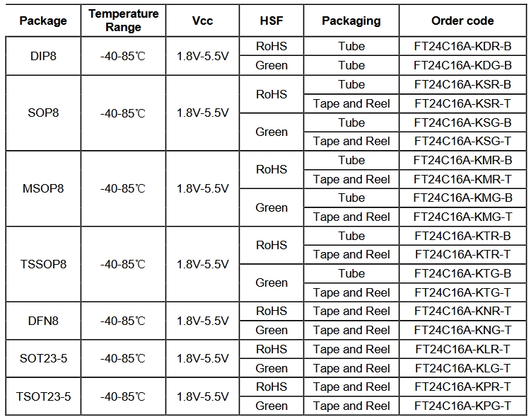 FT24C16A-KLR提供5引脚SOT-23封装,满足不同设计需求。