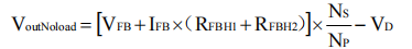 其中,Nf为变压器辅助绕组匝数,RFBH为FB外接的上偏电阻,IFB为FB反馈基准电流。