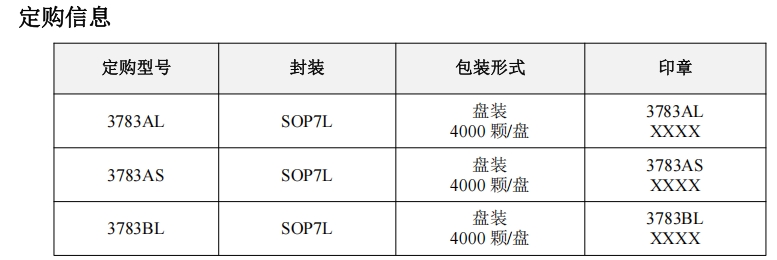 3783AL、3783AS和3783BL芯片的主要区别在于其设计的功率等级。3783AL适用于10W的功率应用,而3783AS和3783BL则适用于15W的功率应用。这意味着在选择芯片时,需要根据具体的应用需求和功率要求来选择合适的型号。例如,对于一些低功率的适配器或小型充电器,3783AL可能是一个更合适的选择;而对于需要更高功率输出的应用,如一些中等功率的LED驱动电源或较大功率的充电器,3783AS或3783BL可能更适合。