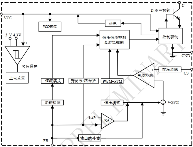芯片通过检测变压器原边的电流和电压实现恒流和恒压功能,能够提供高精度的输出控制。同时,其内置的输出线损补偿技术可以有效补偿输出电流在输出线上的损耗压降,进一步提高输出精度。