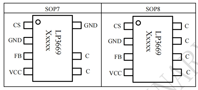 LP3669系列芯片提供了两种主要的管脚封装形式:SOP7和SOP8。以下是这两种封装形式的详细介绍: