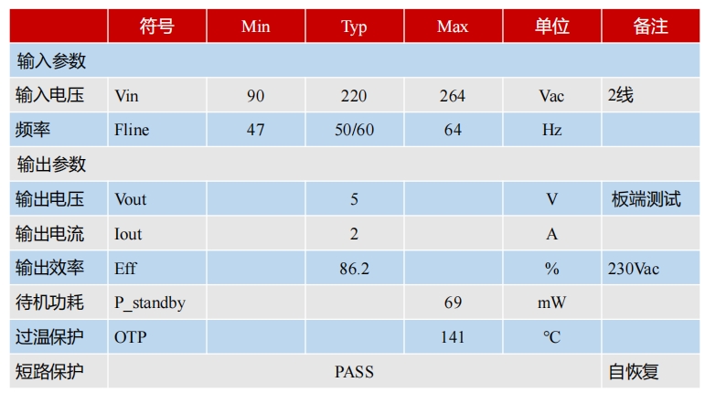 在不同输入电压下,S7134B芯片的待机功耗均低于75mW,满足六级能效的待机功耗要求。具体数据如下表所示: