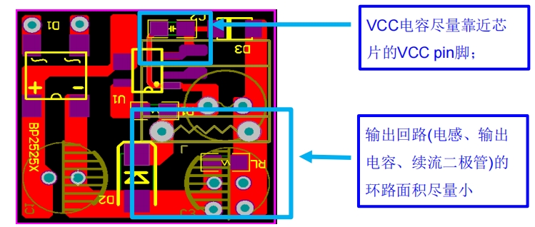Vout电压与续流二极管的正向压降(Vf)和供电二极管的Vf有关,尤其是重载下,续流二极管上的压降损失较多会导致调整率变差。续流二极管推荐选用GPP工艺、42mil、ES1J超快恢复二极管;Vcc二极管推荐选用M7或A7。