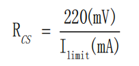 Rcs电阻的选择需综合考虑负载电流和电感电流纹波,并留有余量。由于内部比较器延迟,实际CS_TH略高于芯片内部200mV基准电压。CS电阻计算公式为: