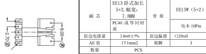 原边电感量:2.8mH±7%(1kHz测试条件)。
