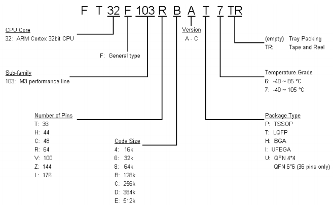 | 64KB | LQFP48 | FT32F103C8AT7 | STM32F103C8Tx |