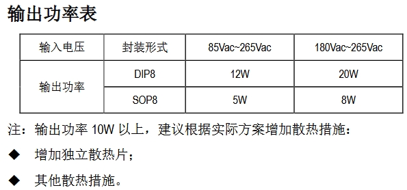 ? DIP8 12 W(宽压)/20 W(高压),SOP8 5 W/8 W