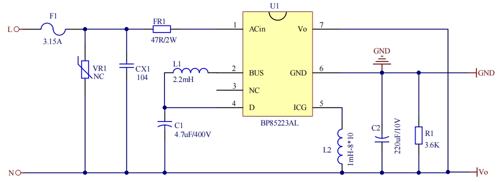 BP85223AL 以其高集成度、低待机功耗、稳定可靠的性能和简洁高效的设计,为工程师提供了一个理想的电源解决方案。其精简的 BOM 清单和紧凑的 PCB Layout 使得设计过程更加简单,生产成本更低。无论是小家电、智能家居还是物联网设备,BP85223AL 都能够满足严格的能效标准和可靠性要求,是现代电子设备电源设计的不二之选。