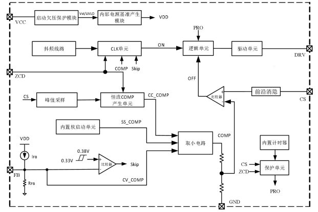 | 反馈与恒流环路 | 神经中枢 | FB→CS 增益 4×、CC_COMP、MPCM 调制器 |