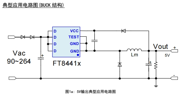 FT8441S 和 FT8441A 在 Buck 结构下的 5V 输出应用电路非常简洁高效,以下是其典型应用电路图及设计要点: