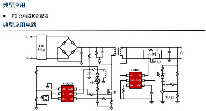 典型应用电路(90-264 VAC→20 V/3.25 A PD)