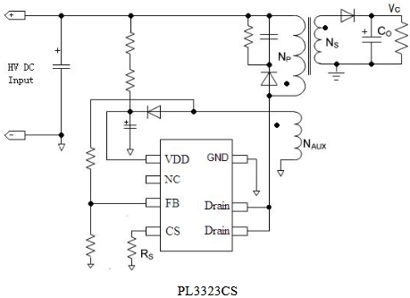 PL3323CS 是一颗 原边调节(Primary-Side Regulation, PSR) 的恒压/恒流 PWM 控制器,内部集成了 650 V 功率 MOSFET,采用 SOP-7 封装,无需光耦、TL431 及任何次级反馈网络,即可实现 ±5 % 的恒压精度与全电压范围的高精度恒流。典型应用功率 5 W-7.5 W,特别适合手机、无绳电话、数码相机等小功率充电器以及消费类备用电源。