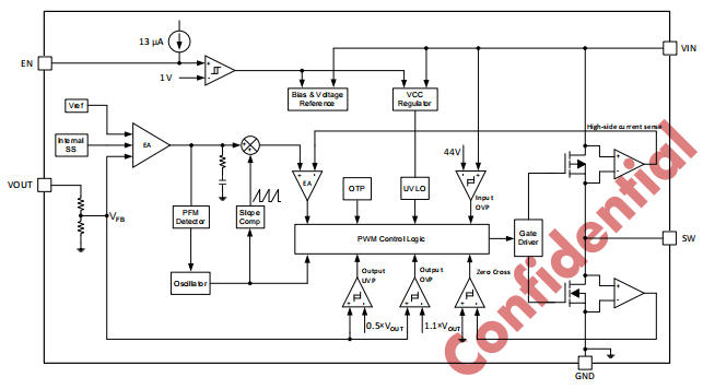 VIN OVP 44V/42V(滞回)—— 抑制汽车负载跳变尖峰