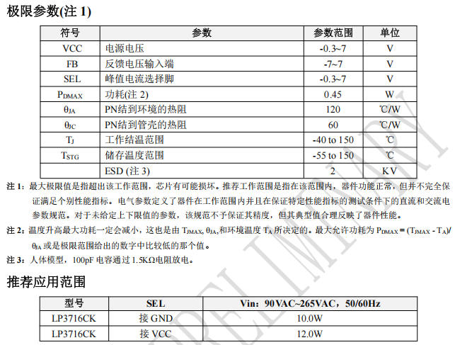 | SEL接法 | 内置峰值电流 | 推荐功率(90-264VAC) | 典型应用 |