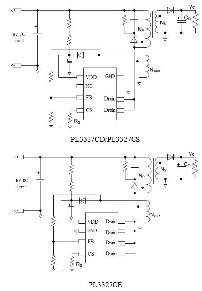 | PL3327CS | SOP7 | 650V/2.5Ω | ≤15W | 贴片,超薄 |