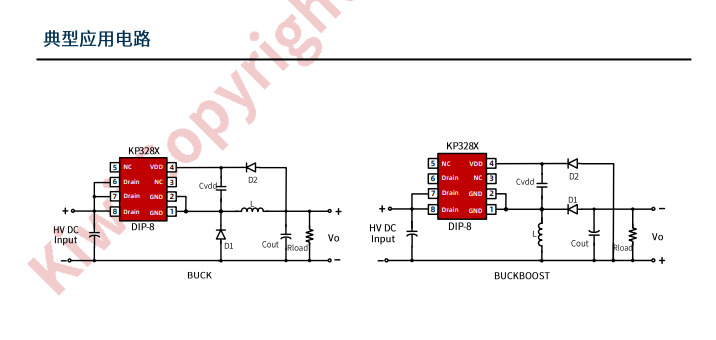 KP328X 系列是一款高性能低成本 PWM 控制功率开关,适用于离线式小功率降压型应用场合,外围电路简单、器件个数少。同时产品内置高耐压MOSFET 可提高系统浪涌耐受能力。
