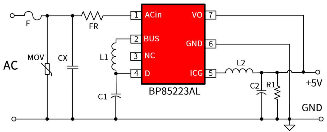 BP85223AL晶丰明源SOP7封装5V 150AM非隔离开关电源IC