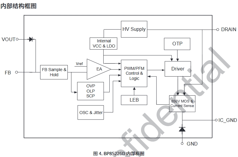 BP85226D是一款高性能、高集成度、低待机功耗的AC-DC开关电源芯片,适用于全电85~265VAC输入的Buck、Buck-Boost变换器拓扑应用,SOP-7封装,内部集成了650V高压MOSFET,高压启动和自供电电路、电流采样电路、电压反馈电路以及续流二极管,采用先进的控制技术,无需外部VCC电容和环路补偿,即可实现优异的恒压输出特性,适用于电饭煲,空气炸锅,智能门铃/插座等小家电。