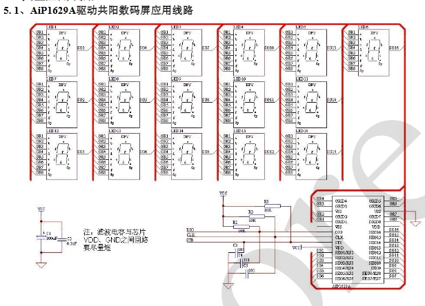 AIP1629A是带键盘扫描接口的LED驱动专用电路,内置键盘扫描接口,MCU数字接口、数据锁存器等电路。主要应用于冰箱、空调、家庭影院等产品显示屏的驱动控制。