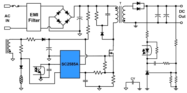 SC2585A 是一款应用于 65W 的电流模式 PWM 电源控制芯片。SC2585A 采用多模式加