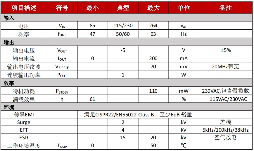 低待机功耗:小于50mW@230Vac,符合现代电源对能效的要求。