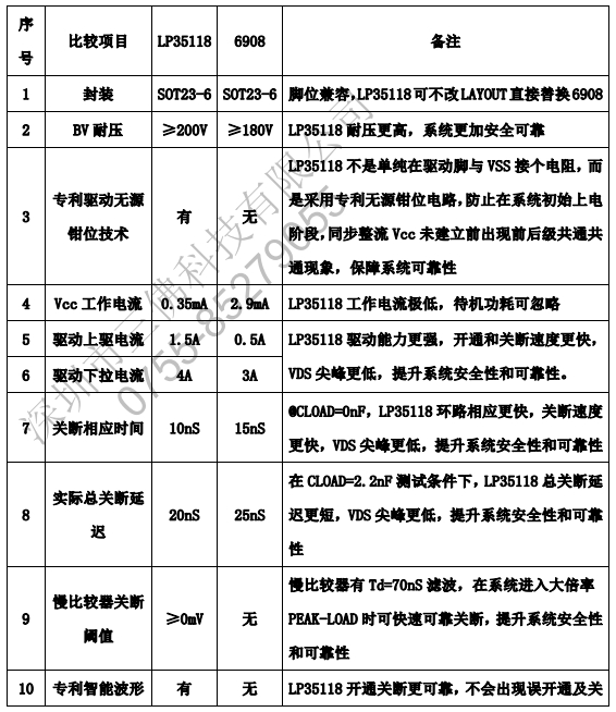 综上所述,LP35118不仅完全兼容MP6908,而且还提供了多项额外的优势,包括高耐压、快速关断、集成VCC供电技术、整流管开通判定技术、多种工作模式兼容、外部元器件少以及过压钳位和欠压保护。这些特性使得LP35118成为一个强大的替代选项,能够在保持与MP6908兼容性的同时,提供更高的性能和可靠性。