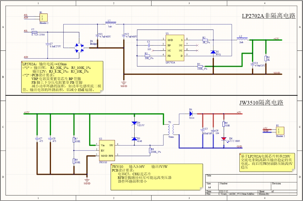 安全可靠:结合LP2702A和JW3510,可以实现短路保护和过流保护功能,当负载过大时,电源会出现间歇性通断的异常状况,保护电路不受损害。