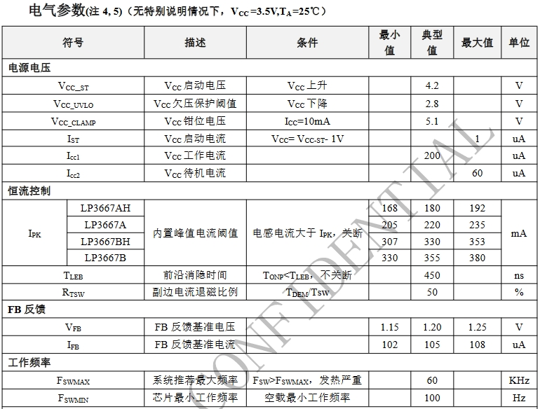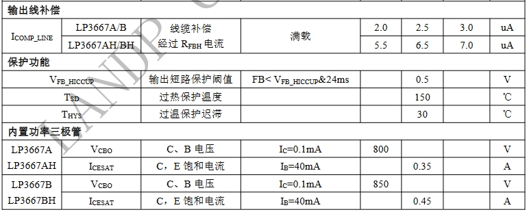 输出线补偿:LP3667BH具有6%的固定比例线缆补偿,而LP3667B则为2%。这一差异可能会影响到输出电压的精确度和稳定性,尤其是在长距离传输中。