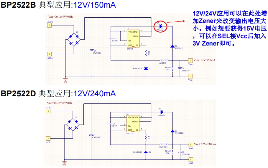 以BP2522B为例,其在12V输出应用中的典型电路设计如下: