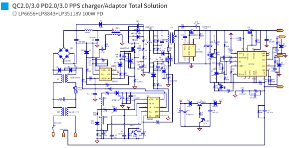 高效率:LP6656和LP8843的组合,使得整个快充方案在转换过程中损耗极小,提高了整体的能效。