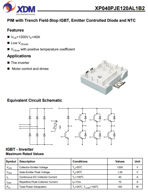 XP040PJE120AL1B2 芯达茂 国产IGBT 功率模块 40A 1200V