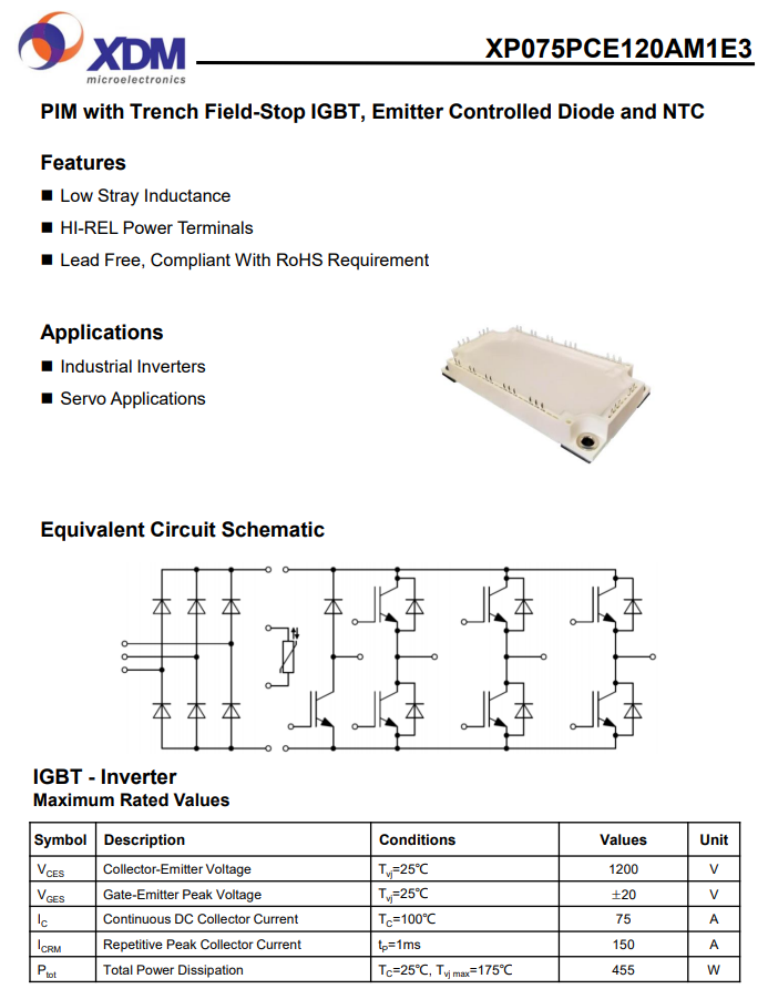 XP075PCE120AM1E3芯达茂 国产IGBT功率???5A 1200V