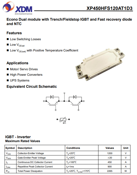 XP450HFS120AT1D3芯达茂 国产IGBT 功率???450A 1200V