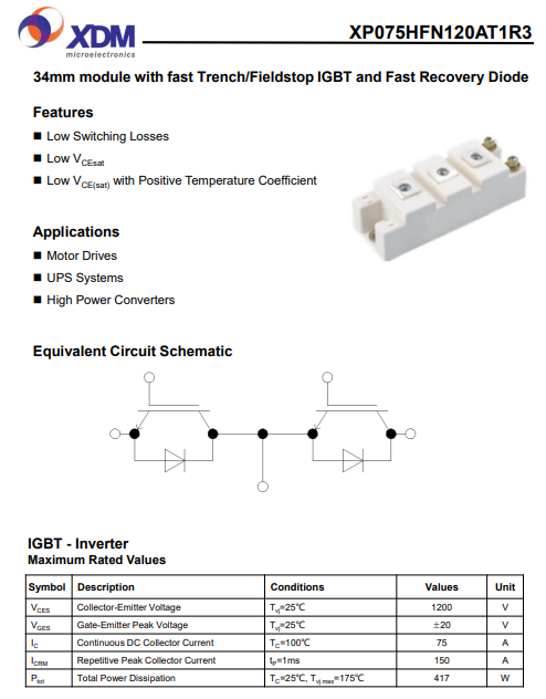 XP075HFN120AT1R3 芯达茂 国产IGBT 功率???75A 1200V