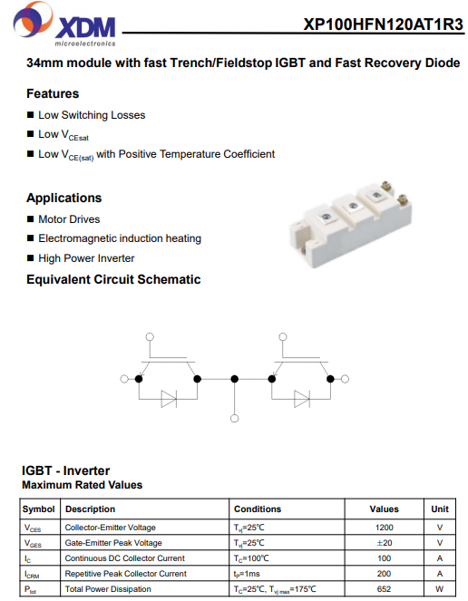 芯达茂XP100HFN120AT1R3 国产IGBT 功率???100A 1200V