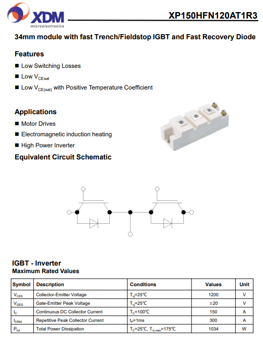 XP150HFN120AT1R3 芯达茂 国产IGBT 功率???50A 1200V