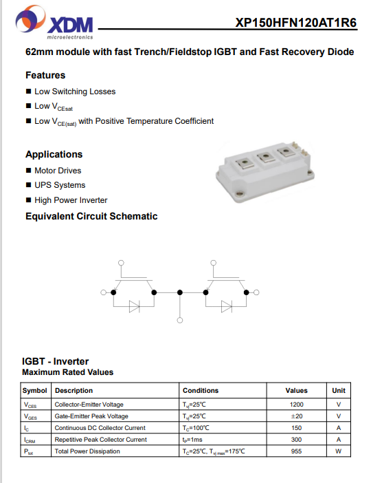 XP150HFN120AT1R6 芯达茂 国产IGBT功率???50A 1200V 62mm
