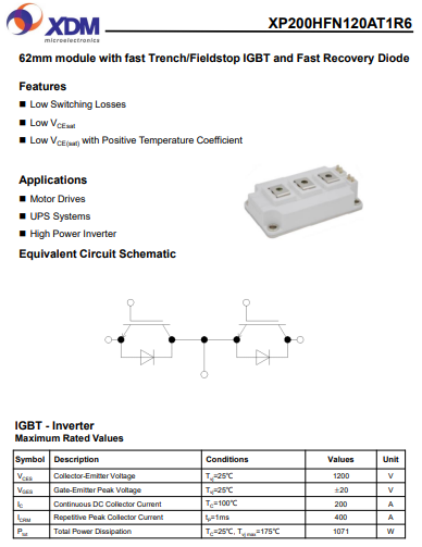 XP200HFN120AT1R6 芯达茂 国产IGBT 功率???200A 1200V 62mm