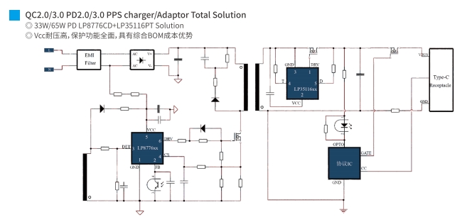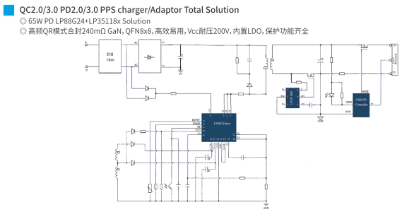 在现代电子设备中,快速充电技术已成为提升用户体验的关键因素之一。65W PD(Power Delivery)快充方案,以其高效率、高兼容性和高安全性,成为众多电子设备制造商的首选。本文将深入探讨两种主流的65W PD快充方案:LP8776CD+LP35116PT和LP88G24+LP35118X,分析它们的技术特点和应用优势。